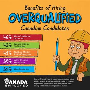 TORONTO, Oct. 08, 2025 (GLOBE NEWSWIRE) -- A new survey from Express Employment Professionals and The Harris Poll reveals a growing tension in the hiring process: while most employers welcome overqualified candidates, concerns about retention and motivation often outweigh the benefits, leaving job seekers frustrated and anxious.
